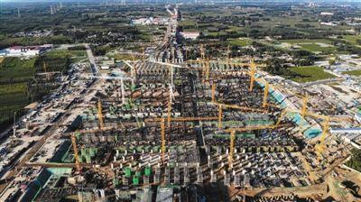 今年8月30日,雄安新區(qū),雄安站建設(shè)現(xiàn)場(chǎng),塔吊林立,機(jī)械轟鳴,數(shù)千名建設(shè)者漸進(jìn)施工,一派熱火朝天的建設(shè)場(chǎng)面。